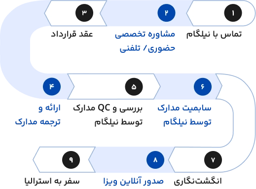 در نیلگام تکمیل فرم ویزا، مشاوره مدارک و حساب بانکی، آپلود مدارک پرداختی سفارت استرالیا برای متقاضی انجام میشود.